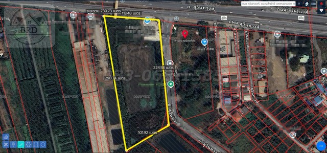 ขายที่ดินติดถนนคู่ขนานมอเตอร์เวย์ เนื้อที่ 9-0-42 ไร่ ไร่ ขายไร่ละ 22 ล้านบาท สะพานสูง กรุงเทพฯ