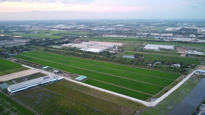 ขายถูกมากที่ดินผังสีเหลืองสร้างหมู่บ้าน ลาดกระบัง-หลวงแพ่ง เนื้อที่ 16-2-79.9 ไร่ ขายไร่ละ 5.5 บาท บางเสาธง สมุทรปราการ