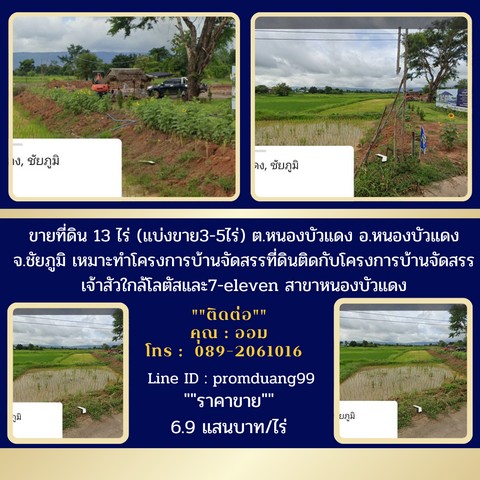 ขายที่ดิน13ไร่โฉนด(แบ่งขาย3-5ไร่)เหมาะทำโครงการบ้านจัดสรรที่ดินติดกับโครงการบ้านจัดสรร ต.หนองบัวแดง อ.หนองบัวแดง จ.ชัยภูมิ