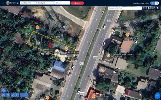 ที่ดินติดถนนใหญ่ 4 เลน อำเภอร่อนพิบูลย์ จังหวัดนครศรีธรรมราช ใกล้สถานีรถไฟเขาช่องทอง