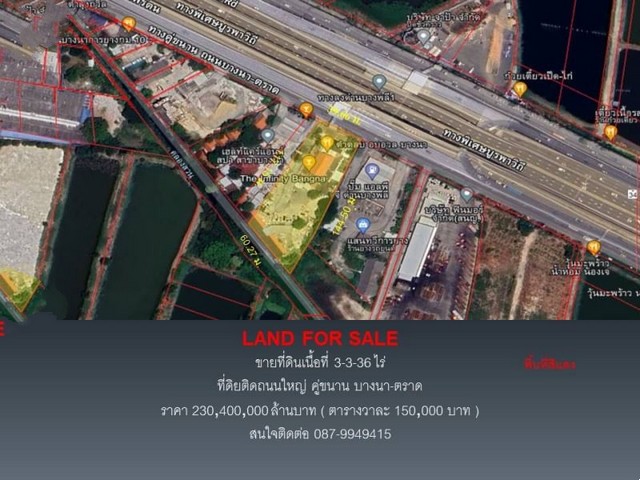 ขายที่ดิน ถนนบางนา-ตราด กม.10 เนื้อที่ 3-3-36 ไร่