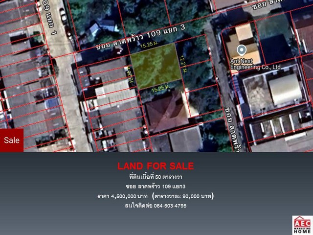 ขายที่ดิน เนื้อที่ 50 ตารางวา ลาดพร้าว ซอย109 แยก3 แขวงคลองจั่น แขวงบางกะปิ กรุงเทพมหานคร 10240 เหมาะสำหรับปลุกบ้าน หรือทำโฮมออฟฟิศ