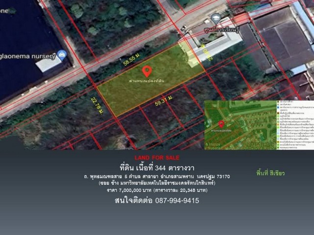 ขายที่ดิน เนื้อที่ 344 ตารางวา ถ. พุทธมณฑลสาย 5 ตำบล ศาลายา อำเภอสามพราน นครปฐม