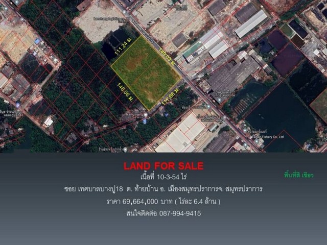 ขายที่ดิน ซอย เทศบาลบางปู18 ต. ท้ายบ้าน เนื้อที่ 10-3-54 ไร่