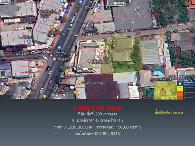 ขายที่ดิน ซอยนาคนิวาส14 (ลาดพร้าว71) 208 ตารางวา เข้าซอยเพียง 18 เมตร