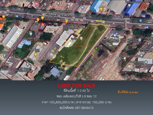 ขายที่ดินซอย เฉลิมพระเกีรติ ร.9 ซอย 12 เนื้อที่ 1-2-92 ไร่