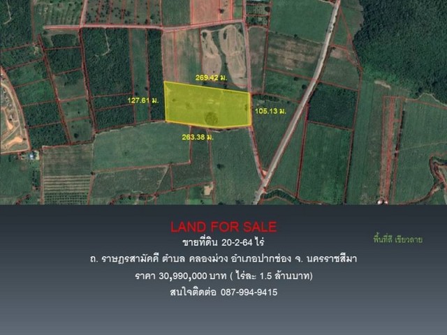 ขายที่ดิน ปากช่อง นครราชสีมา เนื้อที่ 20 ไร่ 2 งาน 64 ตรว..