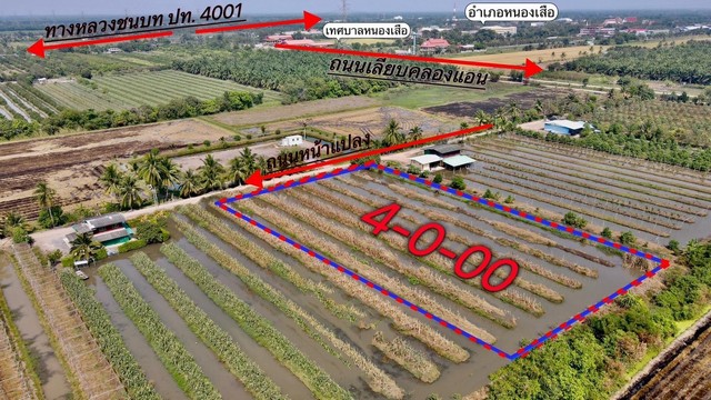 ที่ดินคลอง9 หนองเสือ หน้ากว้าง x ยาว 50 × 32 ม. ถนนสาธารณะประโยชน์กว้าง 7 ม.