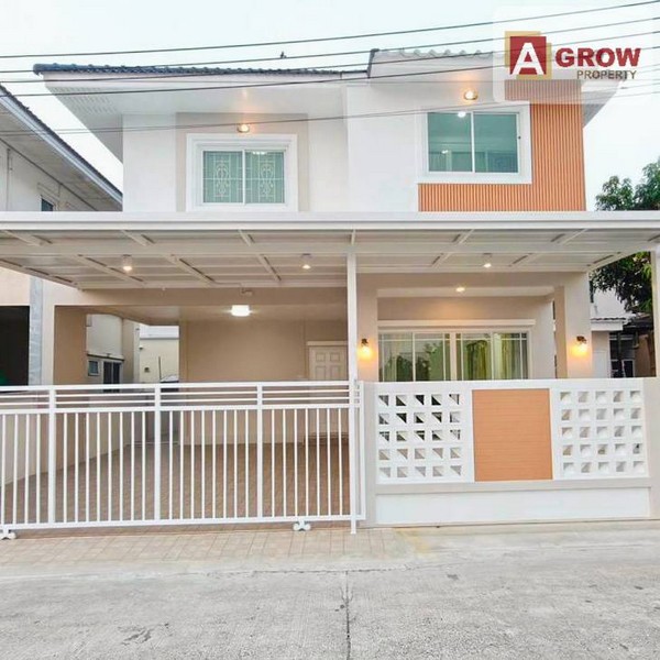 หมู่บ้านคุณาสิริ ถนนบ้านกล้วย-ไทรน้อย หน้าบ้านไม่ชนใคร มีของแถมแบบจัดหนักจัดเต็ม ตกแต่งครบพร้อมอยู่