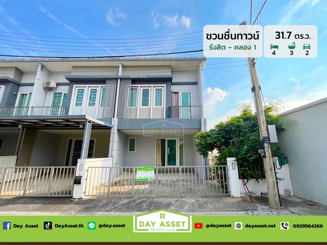ขายทาวน์เฮาส์ 2 ชั้น หมู่บ้าน ชวนชื่น ทาวน์ รังสิต-คลอง 1 หลังมุม ทำเลเข้า-ออกเมืองสะดวก เนื้อที่ 31.7 ตร.ว. ขายเพียง 3,950,000 ล้านบาท