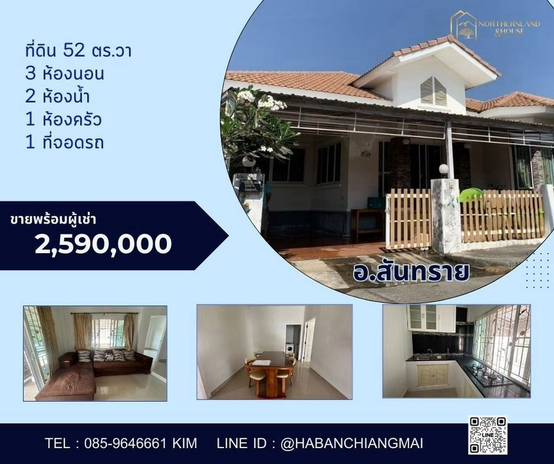 เจ้าของขายเอง #รับนายหน้า #ขายพร้อมผู้เช่า 2.59 ล้าน #โซนสันทราย ม.รุ่งเรือง บ้านสวย ทำเลดี #หนองจ๊อม บ้านชั้นเดียว #ใกล้รวมโชค