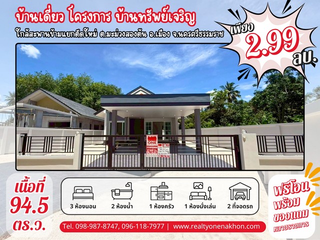 บ้านเดี่ยว โครงการบ้านทรัพย์เจริญ ใกล้สะพานข้ามแยกตัดใหม่ ตำบล มะม่วงสองต้น อำเภอ เมือง จังหวัด นครศรีธรรมราช