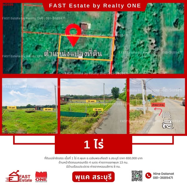 ขายด่วน ที่ดินเปล่า 1 ไร่ โฉนดครุฑแดง ทำเลดี ต.พุแค อ.เฉลิมพระเกียรติ จ.สระบุรี ติดถนน ไฟฟ้า-น้ำประปาหน้าที่ดิน