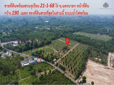 ขายที่ดินพร้อมสวนทุเรียนแปลงใหญ่ 21-1-68 ไร่ จังหวัด นครนายก ทรงที่ดินสวยหน้ากว้าง ระบบน้ำไฟสายสื่อสารพร้อม
