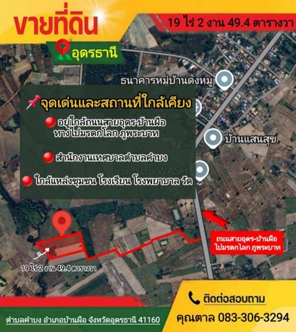 ขายที่ดิน อำเภอบ้านผือ จังหวัดอุดรธานี เนื้อที่ 19 ไร่ 2 งาน 49.4 ตารางวา