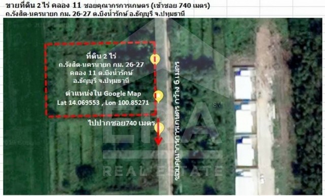 ขายที่ดินเปล่า 2 ไร่ รังสิตคลอง 11 ถ.รังสิต นครนายก ต.บึงน้ำรักษ์ อ.ธัญบุรี จ.ปทุทธานี