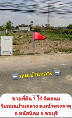 ขายที่ดินสวย 1 ไร่ ติดริมถนนบ้านกลาง ใกล้วัดบ้านกลาง ต.หน้าพระธาตุ อ.พนัสนิคม จ.ชลบุรี