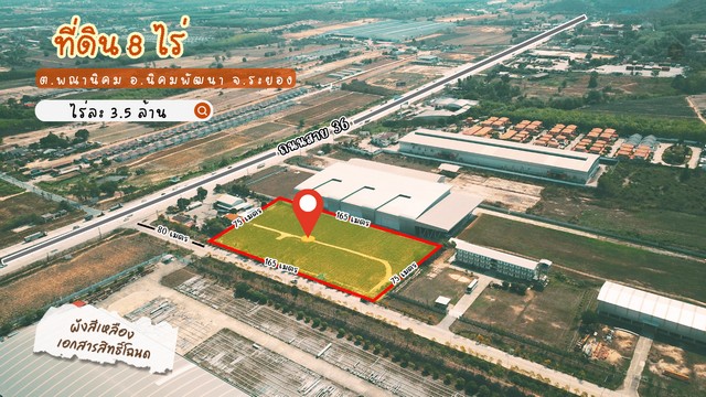 สุดยอดทำเล ที่ดิน 8 ไร่ ใกล้ถนนบางนา-ตราด(ถนนสาย 36 ) เพียงแค่ 80 เมตร