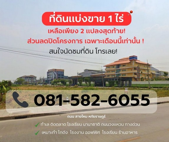 ที่ดินแบ่งขาย 1 ไร่ ติดถนน หทัยราษฎร์ ใกล้ตลาดมารวย เพียง 100 เมตร