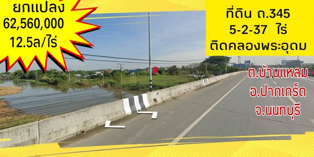 ขาย ที่ดิน ถนน 345 . 5 ไร่ 2 งาน 37 ตร.วา ติดคลองพระอุดม