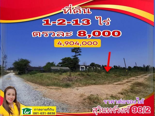 ขาย ที่ดิน ถ.สุวินทวงศ์ 1 ไร่ 2 งาน 13 ตร.วา ต่อรองราคาได้
