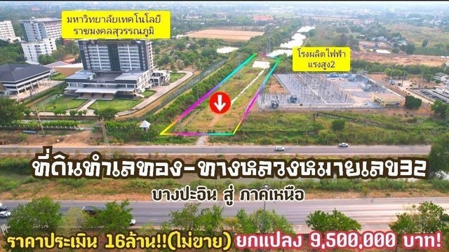 ขายที่ดินเนื้อที่ 6ไร่ 1งาน 80ตารางวา ใกล้มหาวิทยาลัยเทคโนโลยีราชมงคลสุวรรณภูมิ ติดถนนหมายเลข32 ขายต่ำกว่าราคาประเมิน หันตรา พระนครศรีอยุธยา