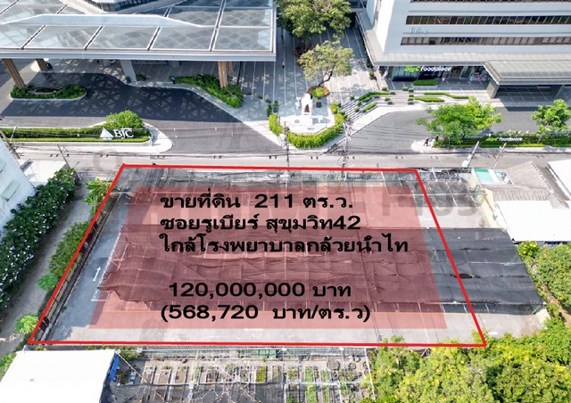 ขายที่ดิน 211 ตร.ว. ซอยรูเบียร์ พระราม4 (สุขุมวิท42) ซอยโรงพยาบาลกล้วยน้ำไท
