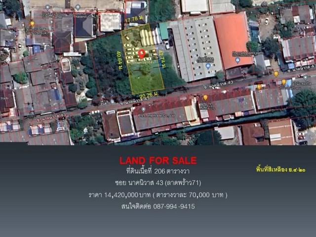 ขายที่ดิน ซอย นาคนิวาส43 (ลาดพร้าว71) เนื้อที่ 206 ตารางวา