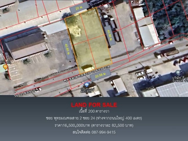 ขายที่ดิน พุทธมณฑลสาย 2 ซอย 24 เนื้อที่ 200 ตารางวา (ห่างจากถนน ใหญ่กาญจนาภิเษก เพียง 400 เมตร)